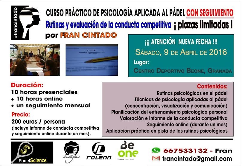 Todo este curso tiene un coste de 200 euros por alumno e incluye la documentación, el informe de conducta competitiva en pádel, el informe que realizan personalizado, las seiones teórico-prácticas y el seguimiento online de cuatro semanas.